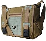 Military Canvas Shoulder Messenger Bag with Leather Straps