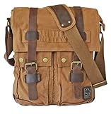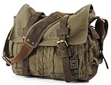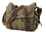 Military Canvas Shoulder Messenger Bag with Leather Straps
