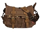 Men's Canvas Leather School Military Shoulder Bag Messenger Bag 1099,coffee