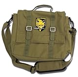 Licensed Metal Gear Solid merchandise. Light weight military style messenger. Exterior features strap closure, adjustable should strap, and one side zipper pocket. Interior features one large compartment with 2 zipper pockets and 4 pen/pencil holders. Approx. Size: 12" L x4" W x 10" H.